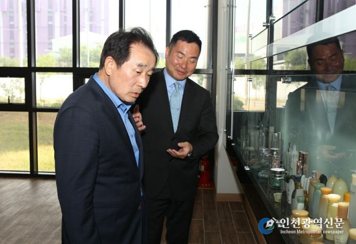 [인천광역신문] 관리자 기자 | 송기섭 충북 진천군수는 12일 군 산수산업단지 소재 화장품 용기 제조기업 ㈜천경(대표 권순교)을 방문했다.