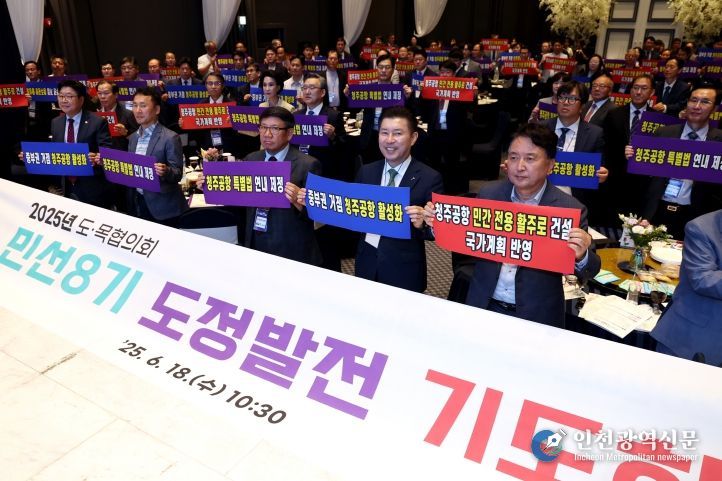 [인천광역신문] 관리자 기자 | 충북도와 충북기독교연합회는 18일 청주 S컨벤션에서 ‘2025년 도·목협의회’를 열고, 청주공항 민간항공기 전용 활주로 건설을 촉구하며 100만인 서명운동에 동참했다.