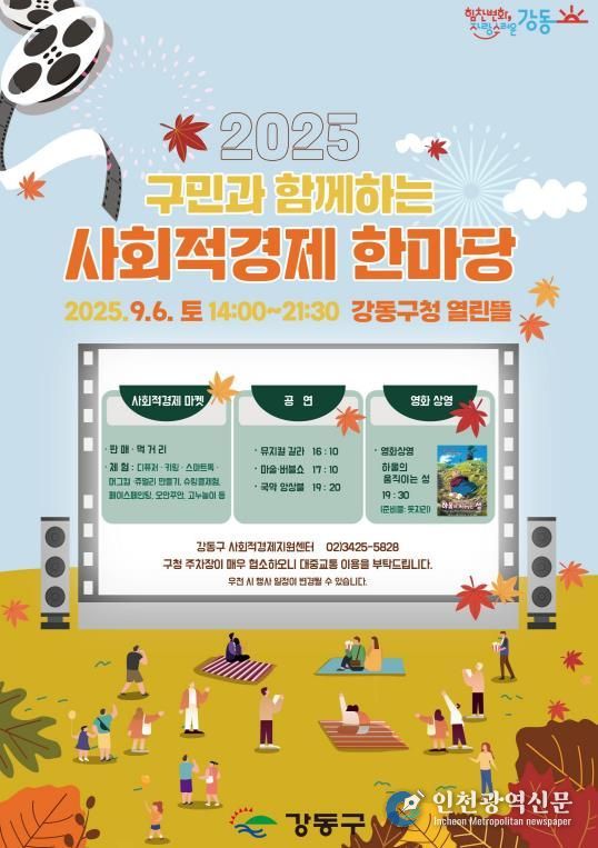 [인천광역신문] 최훈 기자 | 강동구는 오는 9월 6일 오후 2시 구청 앞 잔디광장 열린뜰에서 ‘ 2025 사회적경제한마당’을 개최한다고 밝혔다.