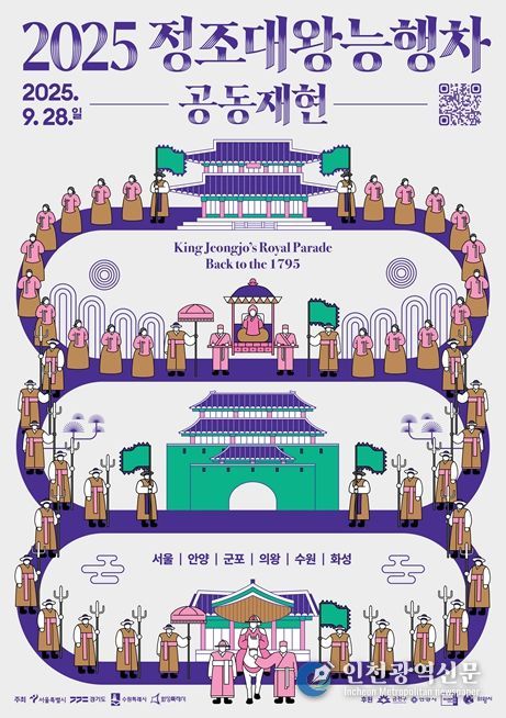 [인천광역신문] 최훈 기자 | 서울시·경기도·수원시·화성시는 9월 28일 조선 제22대 임금 정조대왕의 1795년 을묘년 원행(園幸)을 재현하는 ‘2025 정조대왕 능행차 공동재현’ 행사를 개최한다.