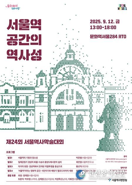 [인천광역신문] 최훈 기자 | 서울역사편찬원(원장 이상배)이 9월 12일 오후 1시, 문화역서울284에서 '제24회 서울역사학술대회'를 개최한다. 이번 학술대회는 ‘서울역 공간의 역사성’을 주제로 1900년 남대문 정거장 개통부터 현재까지 125년간 서울의 ‘관문’ 역할을 해온 서울역의 다채로운 역사를 조명한다.