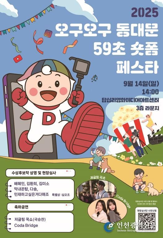 [인천광역신문] 최훈 기자 | 서울 동대문구는 구민과 방문객이 직접 발굴한 동대문구의 숨은 명소를 소개하는 ‘59초 숏폼 공모전’의 수상작을 심사하고 모두가 함께 즐길 수 있는 ‘오구오구 동대문 59초 숏폼 페스타’를 오는 14일 개최한다고 밝혔다.