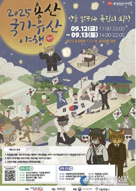 [인천광역신문] 최훈 기자 | 서울 용산구는 오는 9월 12일과 13일 양일간 국가유산인 서울 효창공원에서 ‘2025. 용산 국가유산 야행’을 개최한다고 밝혔다.
