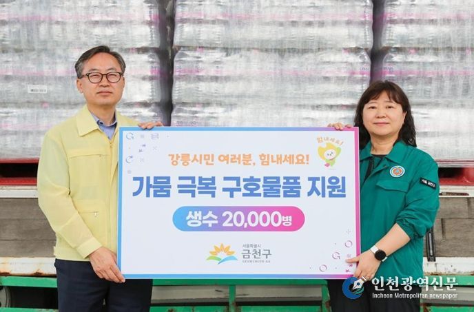 [인천광역신문] 최훈 기자 | 금천구가 최근 강원도 강릉 지역을 중심으로 발생한 극심한 가뭄피해를 돕기 위해 생수 2L 5,000병, 500ml 15,000병 총 2만 병을 긴급 지원한다고 밝혔다.