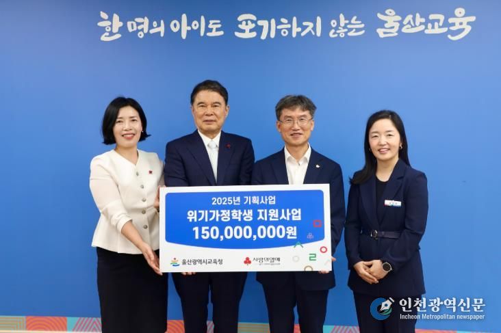 [인천광역신문] 관리자 기자 | 울산광역시교육청은 8일 울산사회복지공동모금회에서 위기가정 학생을 위한 지원금 1억 5,000만 원을 전달받았다.