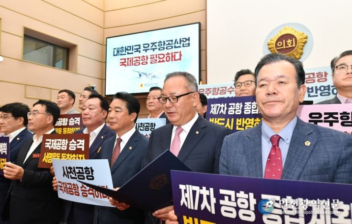 [인천광역신문] 관리자 기자 | 경상남도의회는 9일 본회의 종료 직후 본회의장에서 ‘사천공항 국제공항 승격 국가계획 반영 촉구 성명서’를 발표하며, 정부가 제7차 공항개발 종합계획에 사천공항의 국제공항 승격을 반영할 것을 강력히 요구했다.