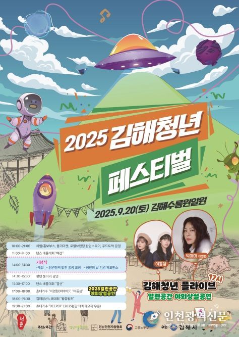 [인천광역신문] 관리자 기자 | 김해시는 오는 13일부터 20일까지 8일간 청년과 시민이 함께 어울리는 세대공감 청년축제 ‘2025 김해 청년 페스티벌’을 개최한다고 10일 밝혔다.