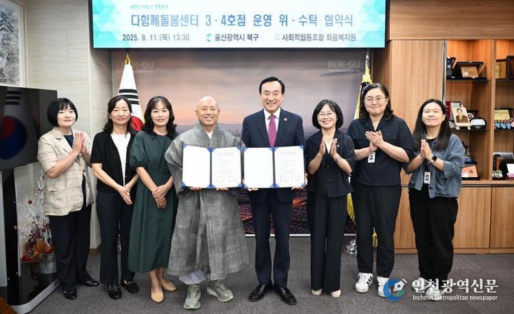 [인천광역신문] 관리자 기자 | 울산 북구는 11일 구청장실에서 사회적협동조합 화음복지원과 다함께돌봄센터 3·4호점 운영 위·수탁 협약을 체결했다.