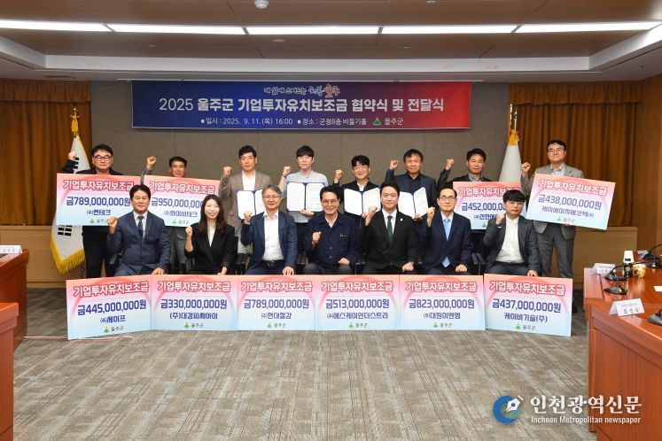 울주군은 이날 군청 비둘기홀에서 신규 투자 희망기업 협약식 및 투자 완료기업 보조금 전달식을 가졌다.