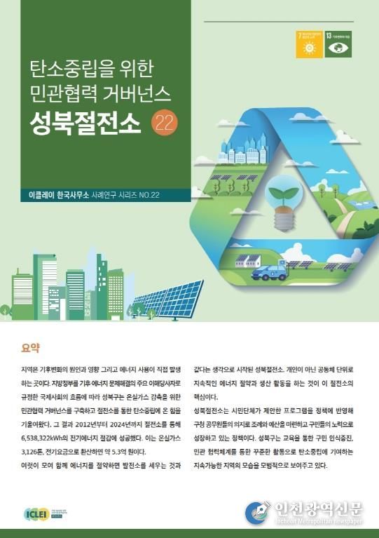 [인천광역신문] 최훈 기자 | 서울 성북구의 ‘탄소중립 민관협력 거버넌스 성북절전소’가 지난 9월 이클레이(ICLEI, 자치단체국제환경협의회) 우수사례로 선정되어 국내외 지방정부에 공유·확산됐다.