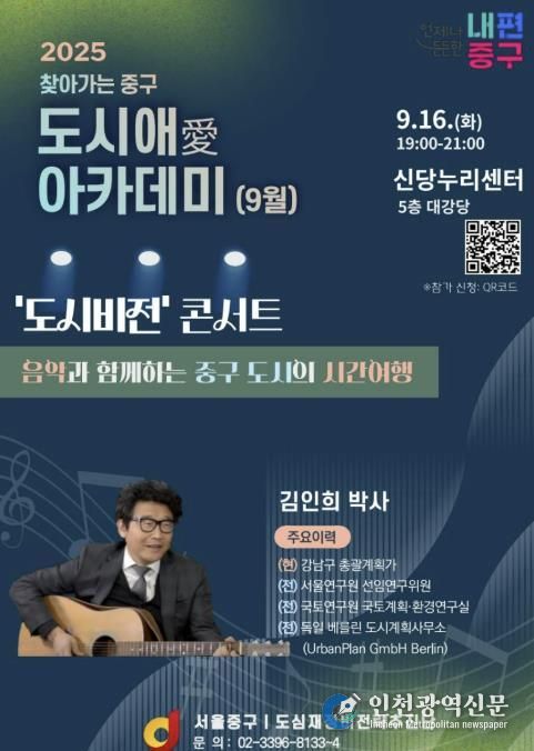 구 관계자는 “이번 아카데미는 음악과 도시 이야기가 어우러져 주민들이 더 쉽게 도시를 이해하고, 중구에 대한 자부심과 애착을 느낄 수 있는 기회가 될 것”이라고 말했다.