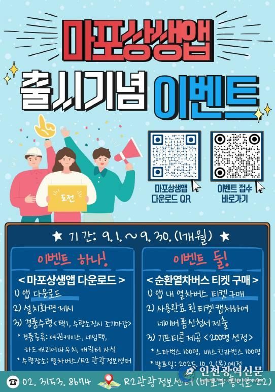 [인천광역신문] 최훈 기자 | 마포구는 지역 상권과 관광자원을 하나로 연결한 새로운 플랫폼 ‘마포상생앱’ 출시를 기념해 9월 한 달간 특별 이벤트를 진행한다.