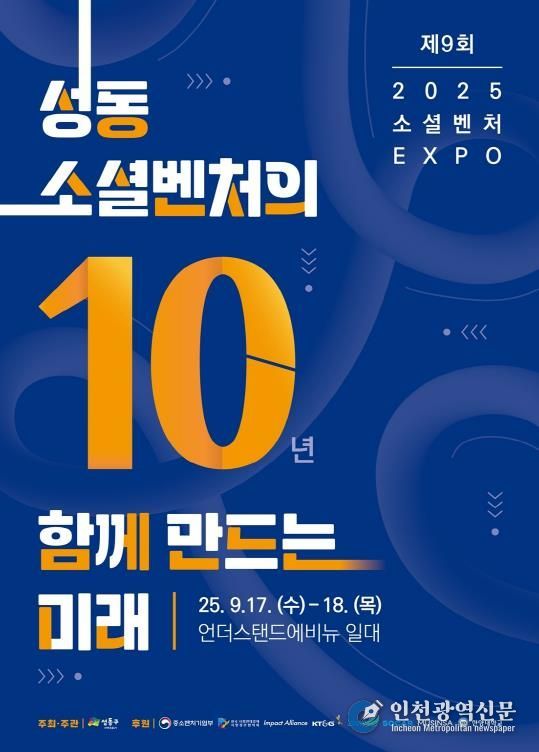 [인천광역신문] 최훈 기자 | 서울 성동구는 오는 9월 17일부터 18일까지 이틀간 성수동 언더스탠드에비뉴 일대에서 ‘제9회 소셜벤처 엑스포’를 개최한다고 밝혔다.