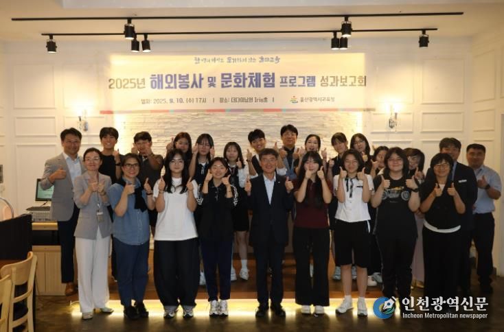 [인천광역신문] 관리자 기자 | 울산광역시교육청은 지난 10일 중구의 한 식당에서 올해 처음으로 진행된 ‘2025 해외 봉사·문화 체험 프로그램’ 성과보고회를 열었다.