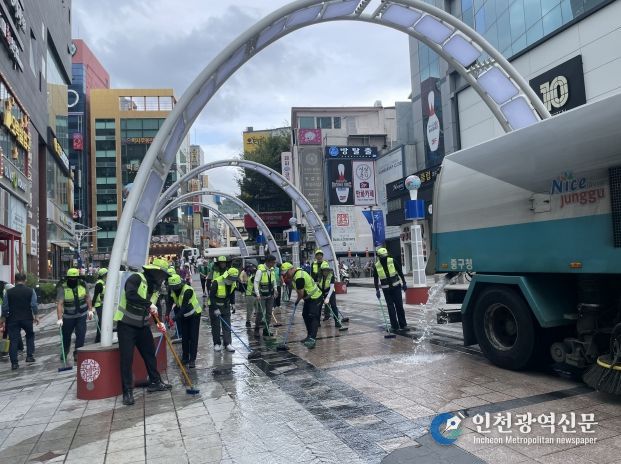 [인천광역신문] 관리자 기자 | 부산 중구는 제30회 부산국제영화제, 106회 전국체육대회를 앞두고, 국내외 방문객과 시민들에게 쾌적한 환경을 제공하기 위해 비프광장 일대에서 환경공무직 대청결 활동을 실시했다고 9월 12일 밝혔다.