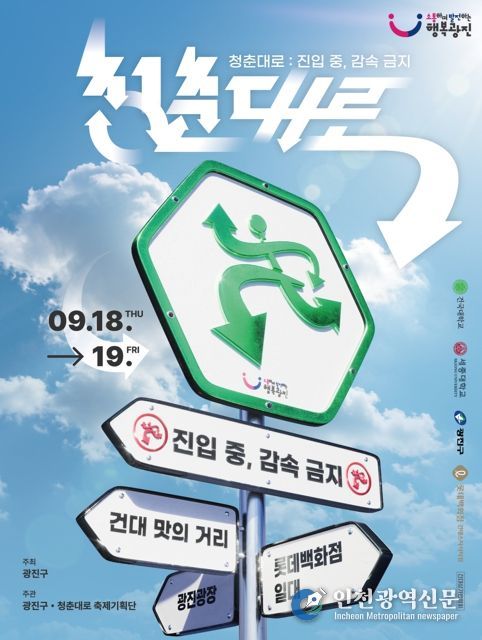 [인천광역신문] 최훈 기자 | 광진구가 오는 9월 18일부터 19일까지 능동로 일대에서 청년문화예술축제 ‘2025 청춘대로’를 개최한다. 부제는 ‘진입 중, 감속금지’로 청년들의 멈추지 않는 열정과 도전 정신을 담았다.
