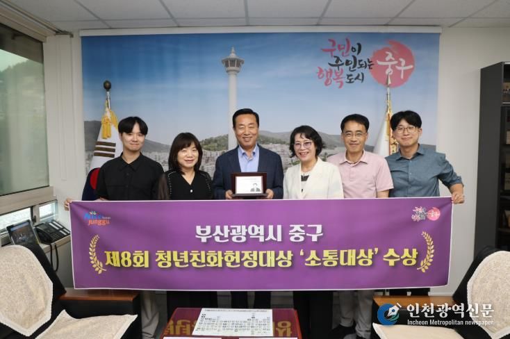 [인천광역신문] 관리자 기자 | 부산 중구청은 9월 13일, 국회의원회관 대회의실에서 열린 '2025년 제9회 대한민국 청년의 날 기념식 및 제8회 청년친화헌정대상 시상식'에서 소통대상을 수상했다고 밝혔다.
