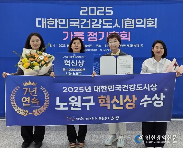 [인천광역신문] 최훈 기자 | 서울 노원구가 '2025년 대한민국 건강도시상 일반부문 혁신상'을 수상하며 7년 연속 건강도시로 인정받았다고 밝혔다.