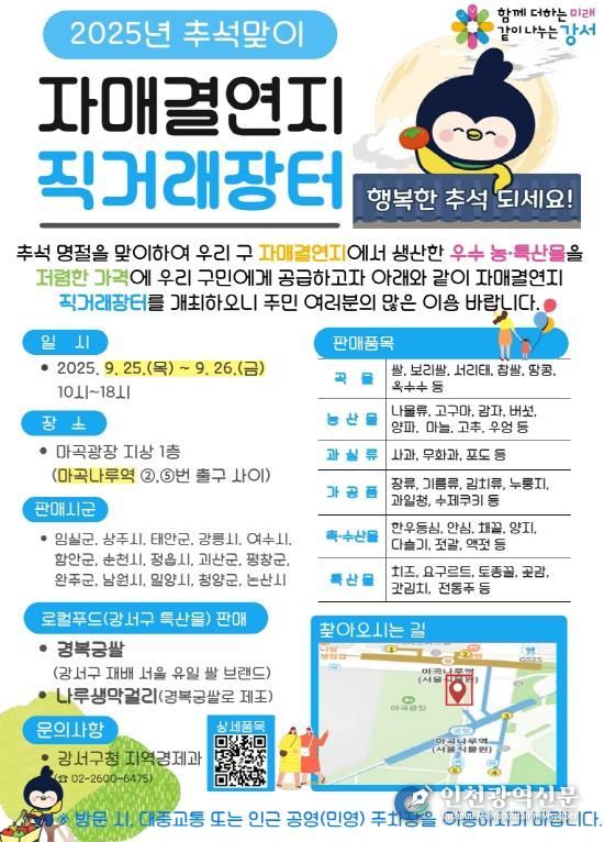 [인천광역신문] 최훈 기자 | 서울 강서구가 오는 25일과 26일 이틀간 ‘추석맞이 자매결연지 직거래장터’를 운영한다고 밝혔다.
