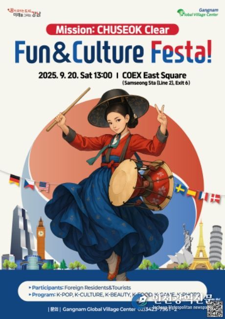 [인천광역신문] 관리자 기자 | 꿈이 모이는 도시, 미래를 그리는 서울시 강남구가 9월 20일 오후 1시부터 5시까지 코엑스 동측광장(영동대로 513)에서 외국인 주민과 관광객이 함께하는 다문화 축제 ‘펀앤컬처 페스타 Fun&Culture Festa! (미션 : 추석 클리어)’를 연다.