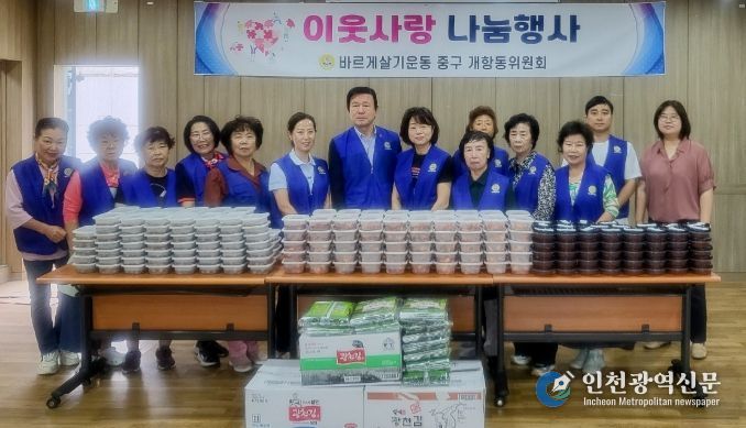 [인천광역신문] 최예준 기자 | 바르게살기운동 중구 개항동 위원회(위원장 이덕순)는 저소득 취약계층을 대상으로 ‘정성을 담은 이웃사랑 반찬 나눔 행사’를 실시했다고 19일 밝혔다.