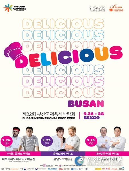 [인천광역신문] 관리자 기자 | 부산시는 오는 9월 26일부터 28일까지 3일간 벡스코 제1전시장에서 '제22회 부산국제음식박람회(BIFE 2025)'와 '제8회 부산마리나셰프챌린지대회(BMCC 2025)'를 동시에 개최한다고 밝혔다.
