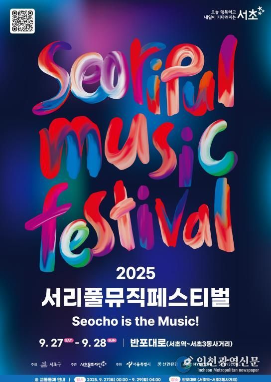 [인천광역신문] 최훈 기자 | 서울 서초구의 대표 축제 ‘2025 서리풀뮤직페스티벌’이 10주년을 맞아 한층 새로워진 모습으로 돌아온다. 오는 9월 27일~28일, 왕복 10차선 반포대로 900m 구간(서초역~서초3동 사거리)이 차 없는 거대한 무대로 변신하고 세계적 아티스트부터 지역 주민까지 모두가 함께 만드는 음악 축제가 펼쳐진다.
