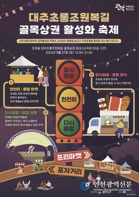 먼저 구는 오는 9월 27일 올해 첫 선을 보이는 골목상권 축제들을 소개한다. 조원동 골목상권 일대에서 열리는 ‘제1회 대추초롱조원복길 골목상권 축제’는 ‘신호등’을 테마로 ▲상권 내 맛집 대표 먹거리를 만나볼 수 있는 ‘잠시멈춤’(로컬 미식존) ▲플리마켓, 체험 프로그램이 있는 ‘천천히’(로컬 마켓존) ▲거리노래방, 예술인 공연을 즐기는 ‘다시출발’(로컬 아트존) 등 모든 세대가 함께 즐길 수 있는 풍성한 콘텐츠를 선보인다.