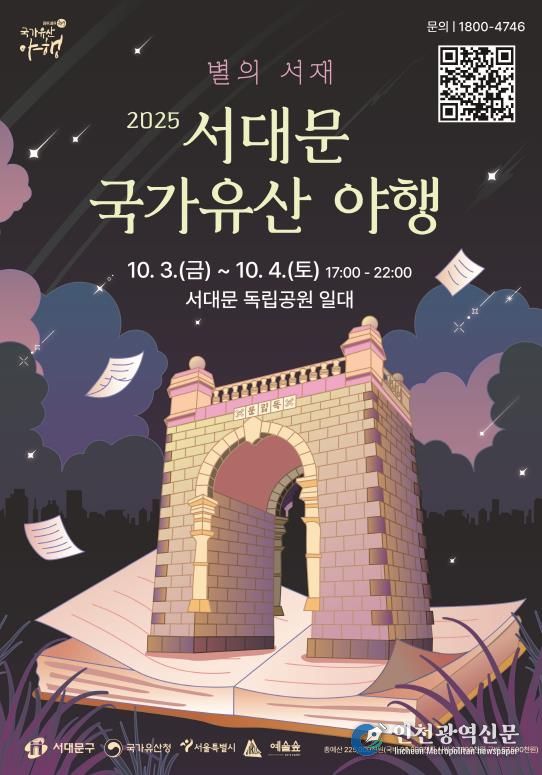 [인천광역신문] 최훈 기자 | 서대문구가 다음 달 3∼4일 오후 5시부터 밤 10시까지 서대문독립공원 일대에서 ‘별의 서재’란 주제로 ‘2025 서대문 국가유산 야행’을 개최한다.