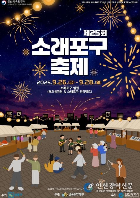 [인천광역신문] 최예준 기자 | 인천시 남동구와 남동문화재단은 오는 9월 26~28일까지 사흘간 열리는 ‘제25회 소래포구 축제’의 먹거리 정보를 사전에 투명하게 공개한다고 22일 밝혔다.