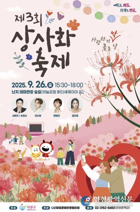 [인천광역신문] 최훈 기자 | 마포구는 9월 26일 난지 테마관광 숲길에서 ‘사랑하기 딱 좋은 날’이라는 주제로 (사)마포문화관광협의회 주관 ‘제3회 마포구 상사화 축제’를 개최한다.