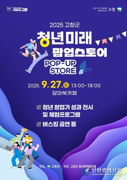 [인천광역신문] 관리자 기자 | 고창군은 오는 9월27일 오후 1시부터 담마북카페에서 2025 청년의 날 기념행사 ‘청년미래 팝업스토어’를 연다.