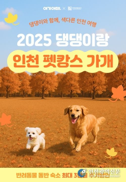 [인천광역신문] 최예준 기자 | 인천관광공사는 반려동물 동반 여행 활성화를 위해 대한민국 대표 종합 여행·여가 플랫폼 “여기어때”와 함께 '2025 댕댕이랑 인천 펫캉스 가개' 온라인 숙박 할인 기획전을 9월 24일부터 11월 30일까지 개최한다고 밝혔다. 이번 기획전은 반려동물과 함께하는 여행 수요가 꾸준히 증가하는 가운데, 인천을 대표적인 반려동물 친화 관광도시로 널리 알리기 위해 마련됐다.