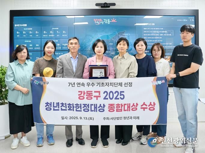 [인천광역신문] 관리자 기자 | 강동구가 국회사무처 소관 사단법인 ‘청년과미래’가 주관하는 ‘2025 청년친화헌정대상’에서 ‘종합대상’을 수상하며, 7년 연속 청년정책 우수 자치단체로 선정되는 영예를 안았다고 23일 밝혔다.