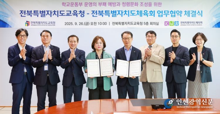 [인천광역신문] 관리자 기자 | 전북특별자치도교육청과 전북특별자치도체육회가 공정하고 투명한 학교 운동부 환경 조성을 위해 손을 맞잡았다.