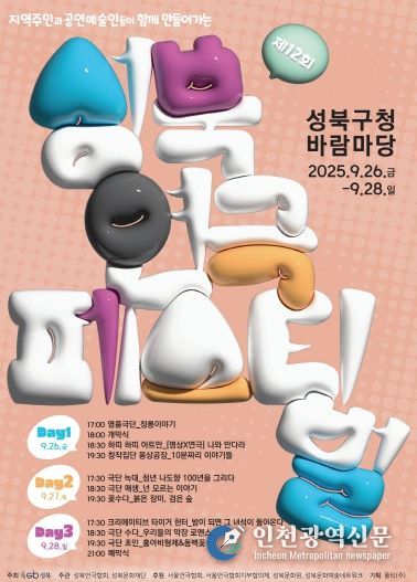 [인천광역신문] 최훈 기자 | 서울 성북구가 지역주민과 예술인이 함께 만드는 야외 연극축제 ‘제12회 성북 연극페스티벌’을 9월 26일부터 28일까지 3일간 성북구청 맞은편 바람마당에서 개최한다.
