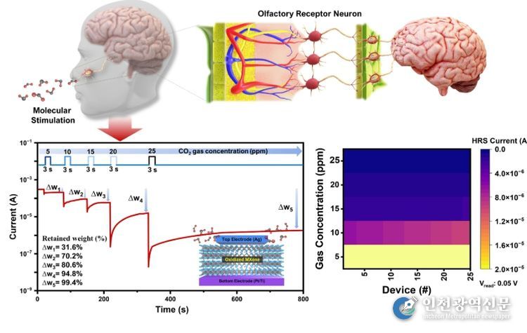 [인천광역신문] 관리자 기자 | 경상국립대학교공과대학 나노신소재융합공학과 박준홍 교수(생체모방 반도체 연구실) 연구팀은, 인간의 후각과 두뇌를 모방하여 다양한 환경에서 발생 가능한 극미량의 유해원을 인지하고 학습하는 뉴로모픽 반도체 기술을 개발했다.