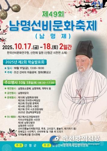 [인천광역신문] 관리자 기자 | 산청군은 오는 17~18일 시천면에 위치한 한국선비문화연구원에서 ‘제49회 남명선비문화축제’를 개최한다고 14일 밝혔다.