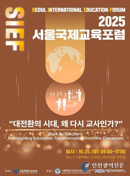 [인천광역신문] 관리자 기자 | 서울특별시교육청 산하 서울특별시교육청교육연구정보원 교육정책연구소는 오는 10월 25일 서울특별시교육청교육연수원에서 “대전환의 시대, 왜 다시 교사인가(Back to Teachers: Reimagining Education Transformation from the Classroom)”를 주제로 2025 서울국제교육포럼(Seoul International Education Forum, 이하 SIEF 2025)을 개최한다.