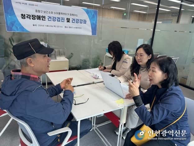 [인천광역신문] 최훈 기자 | 중랑구는 지난 10월 23일, 청각장애인의 건강검진 접근성을 높이고 자가 건강관리 역량을 강화하기 위해 중랑구 수어통역센터에서 ‘청각장애인 건강검진 및 건강강좌’를 실시했다.