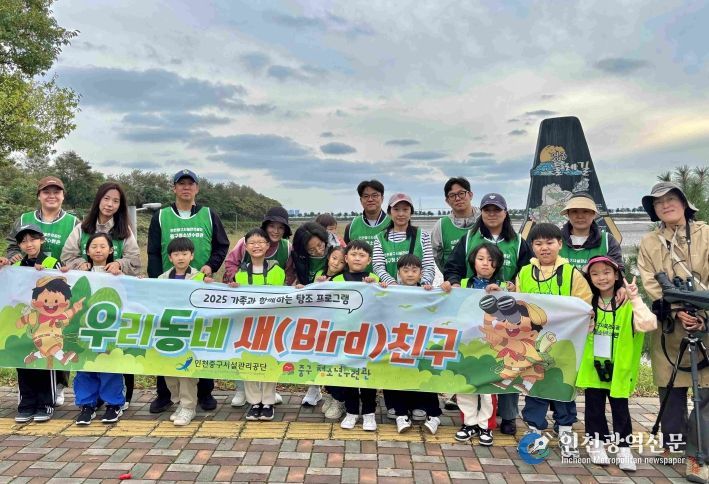 [인천광역신문] 최예준 기자 | 인천중구시설관리공단(이사장 손영식) 운영 중구청소년수련관은 지난 18일 관내 초등 청소년과 가족 30명을 대상으로 송산유수지와 송산(운남동 소재)에서 가족 참여형 탐조 프로그램 ‘우리동네 새(Bird)친구’를 성황리에 진행했다.