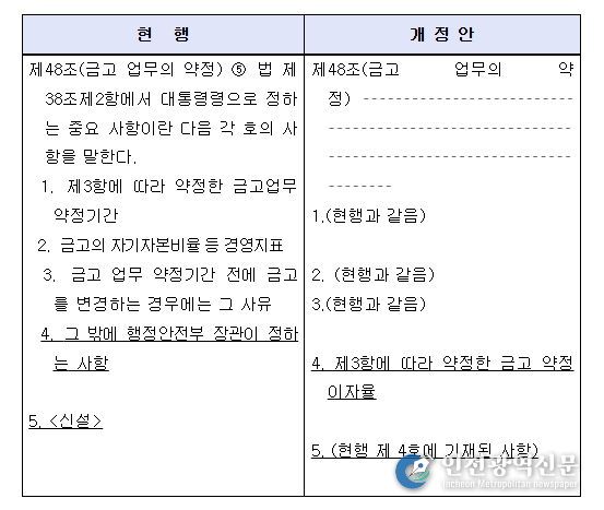 [인천광역신문] 관리자 기자 | 행정안전부는 국민의 알권리를 보장하고 지방정부 재정운용의 효율성을 높이기 위해 자치단체 금고 ‘약정 이자율’을 공개하도록 하는'지방회계법 시행령' 일부 개정령안을 10월 30일부터 입법예고 한다고 밝혔다.