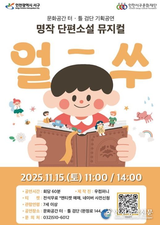인천서구문화재단은 11월 15일 오전 11시와 오후 2시, 문화공간 터·틀(검단)에서 첫 번째 기획공연인 국악뮤지컬 '얼쑤'를 선보인다.