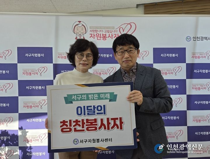 [인천광역신문] 최예준 기자 | 인천서구자원봉사센터는 지역사회 발전을 위해 여러 분야에서 다양한 봉사활동에 참여한 자원봉사자를 격려하고 자원봉사 문화를 확산하기 위한 “자원봉사 칭찬릴레이”를 매월 실시하고 있다.