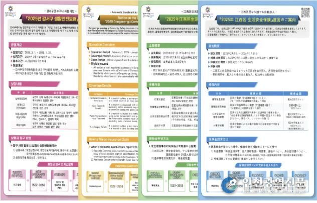 [인천광역신문] 기자 | 서울 강서구는 ‘생활안전보험’ 안내문을 한국어, 영어, 중국어, 일본어 4개 국어로 제작했다고 밝혔다.