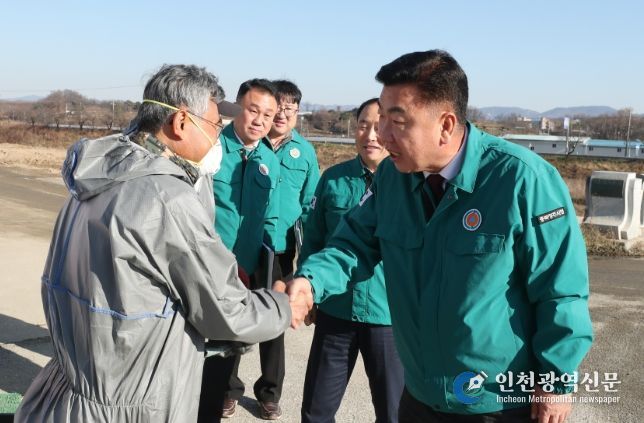 [인천광역신문] 관리자 기자 | 이범석 청주시장은 4일 고병원성 조류인플루엔자(AI) 방역 현장을 방문해 조치사항과 대응 매뉴얼을 점검하고 현장 직원들에게 철저한 방역 추진을 당부했다.