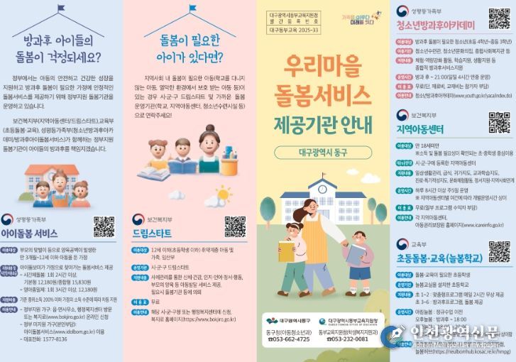 [인천광역신문] 박진 기자 | 대구동부교육지원청은 학교와 지역사회 간 돌봄서비스 정보 공유를 강화하기 위해 ‘2026년 늘봄 안내지도(리플릿)’를 제작하여 관할 학교에 배포했다고 19일(금) 밝혔다.