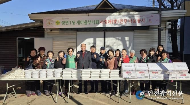 [인천광역신문] 박진 기자 | 생연1동 새마을부녀회는 지난 18일 연말연시를 맞아 지역사회에 따뜻한 정을 나누고 이웃사랑을 실천하기 위해 관내 취약계층 31가구를 대상으로 ‘사랑애(愛) 만두 나눔 봉사’를 진행했다.