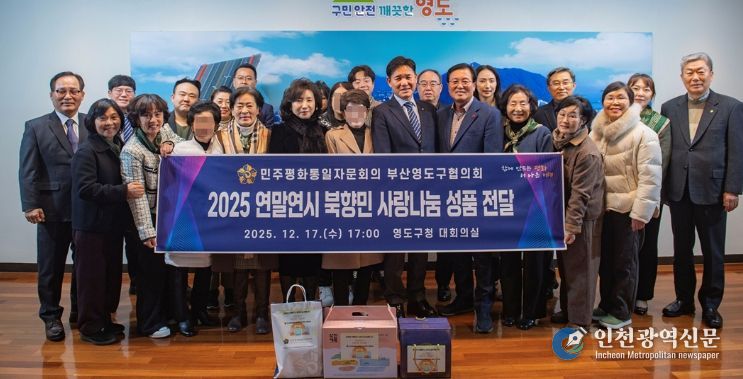 [인천광역신문] 박진 기자 | 민주평화통일자문회의 부산영도구협의회(협의회장 김창석)가 연말연시를 맞아 지난 12월 17일 영도구청에서 북향민 정착 지원을 위한 사랑나눔 성품 전달식을 개최했다.