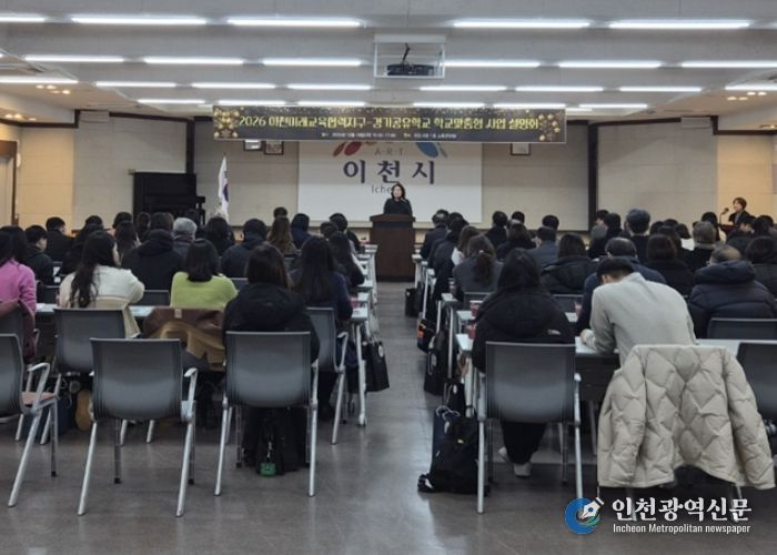 [인천광역신문] 박진 기자 | 이천교육지원청은 이천시와 함께 12월 18일, 이천시청 1층 소통큰마당에서 관내 60교 교감 및 업무담당교사 등을 대상으로 ‘2026 이천미래교육협력지구-경기공유학교 학교맞춤형 사업설명회’를 개최했다.